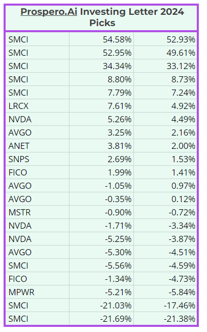 Our 5 biggest wins are all SMCI. We always say the signals aren’t perfect, but they will make anyone a better investor if you get to know them. This is a great example. We have made a mint this year on SMCI, but it is also our 2 biggest losses. We are willing to be aggressive with this stock because we feel the signals work well overall with SMCI, but people see us bail on trades quickly sometimes too. This embodies our overall advice: you can’t be afraid to be aggressive, but always trade defensively. It is better to leave money on the table than suffer huge losses.