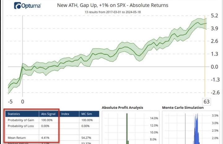 The long awaited rate cut was announced by the Fed last week and the markets rallied by over 1% after the announcement. The S&P 500 broke through its upper resistance and experienced its first all time high in weeks, but then slightly retracted into the weekend. This was 39th all time high for the S&P for the year. With that comes some good news. Check out the graphic below (Via Optuma):