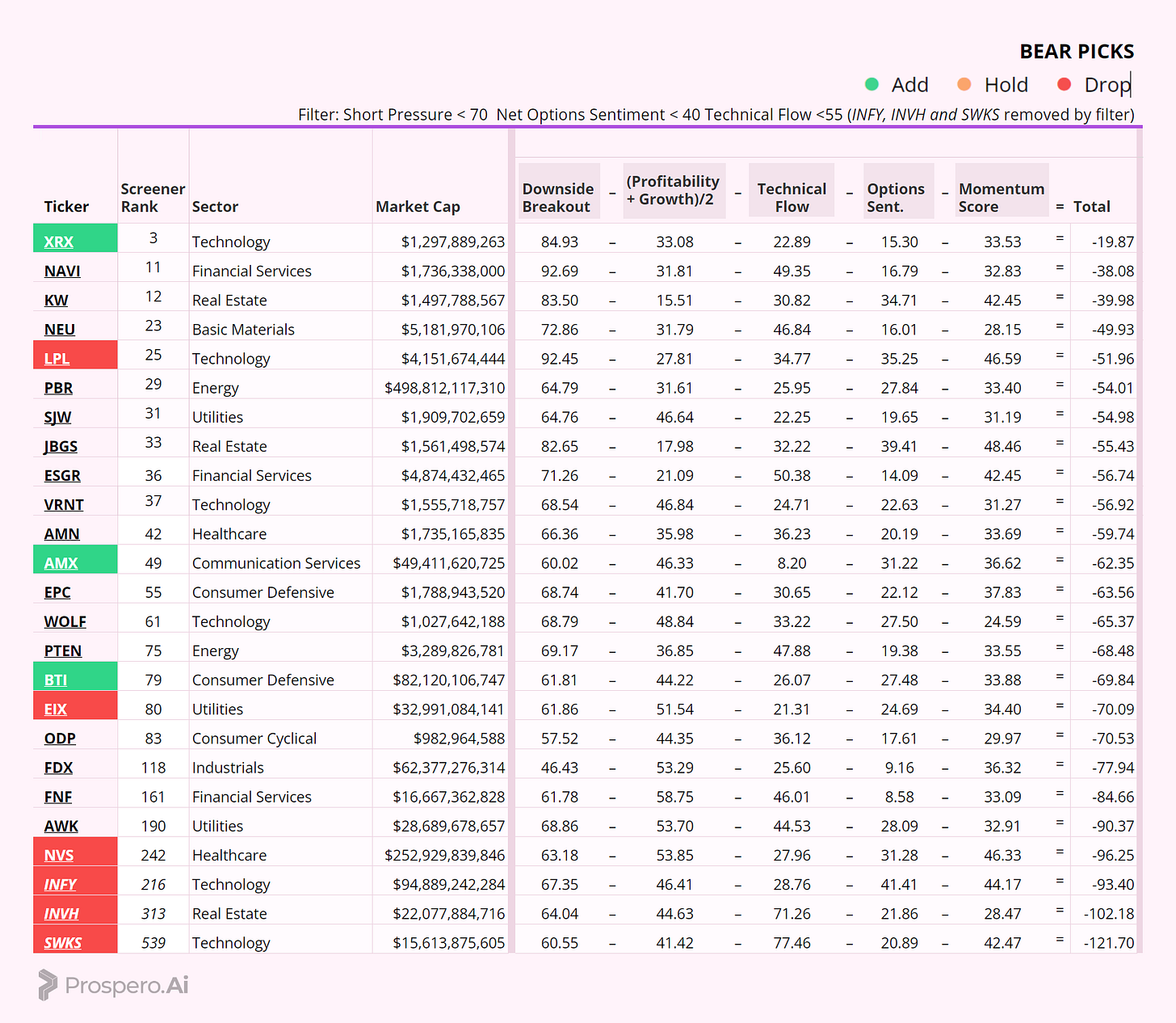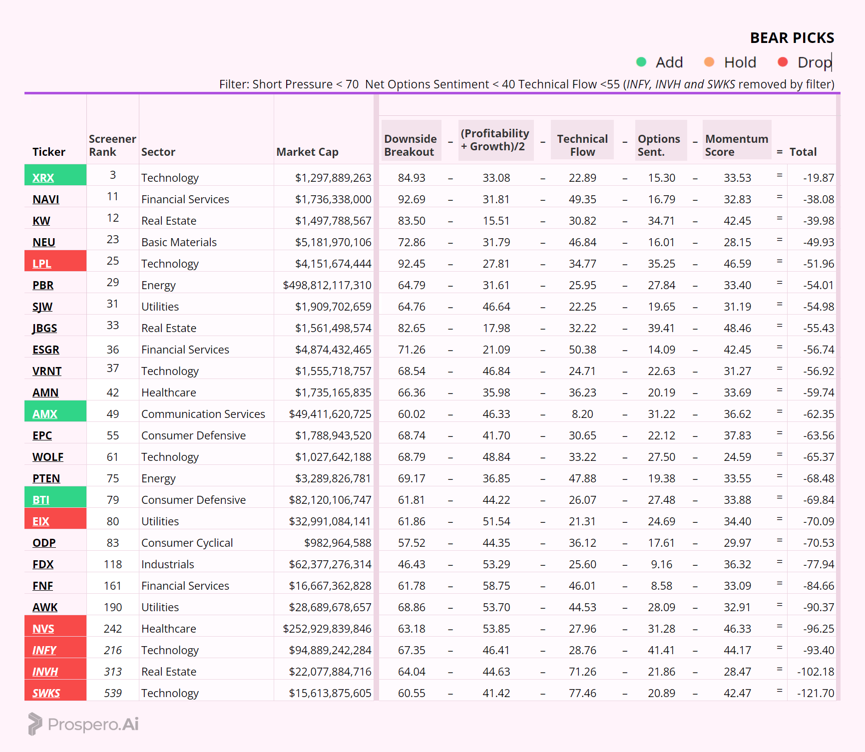 Short / Bear Moves - XRX, AMX and BTI adds / no holds / LPL, EIX, NVS, INFY, INVH and SWKS drops