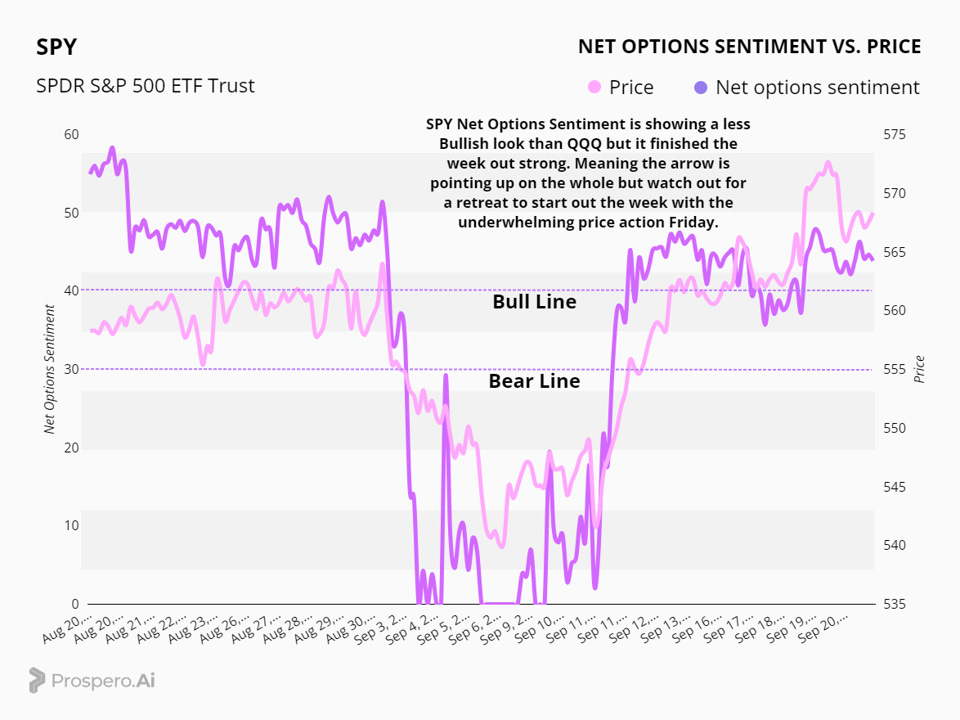 SPY and QQQ Net Options Sentiment > 40 = Bullish < 30 = Bearish.