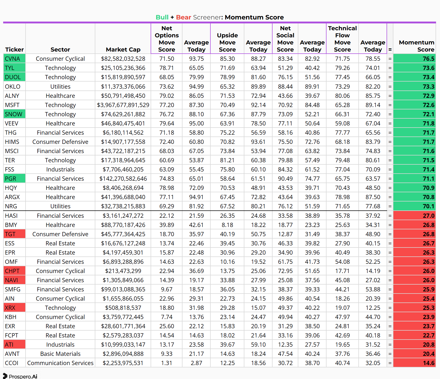 Those who use the app regularly know this isn’t unusual. Net Options Sentiment (NOS) often leads price—sometimes by days or even weeks. That’s exactly why we created the Momentum Score in our trading letter: to help spotlight those under-the-radar names before the crowd catches on.